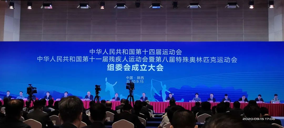 2020年9月15日,中华人民共和国第十四届运动会、中华人民共和国第十一届残疾人运动会暨第八届特殊奥林匹克运动会组委会成立大会在西安举行,标志着本届全运会和残特奥会的筹备工作进入了新的组织实施阶段。