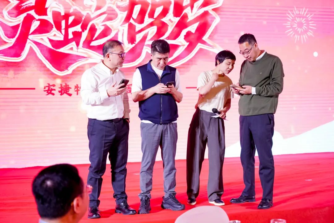 抽奖环节结束后,年会现场迎来了一个特别的彩蛋时刻。z6.com尊龙物联董事长刘柏呈、执行董事庞文魁、总裁王涛、执行总裁滕洁在微信群内临时发放群红包,大家疯狂抢抢抢,瞬间点燃现场氛围,员工们的欢呼声和笑声此起彼伏。